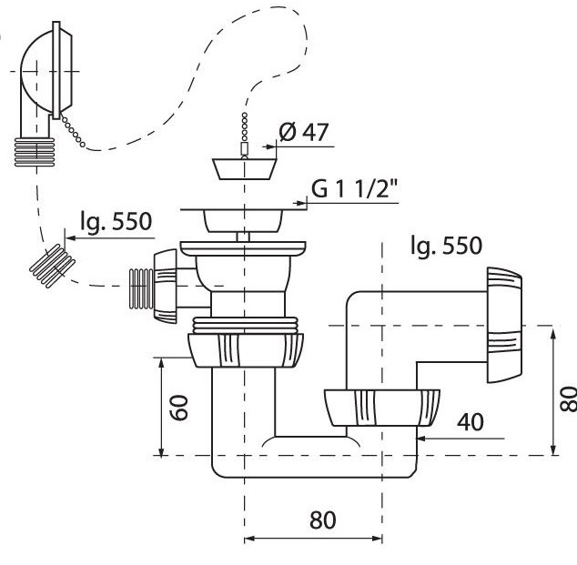 Слив-перелив WIRQUIN для ванны с регулируемым сифоном 1 1/2'', Франция 30718059