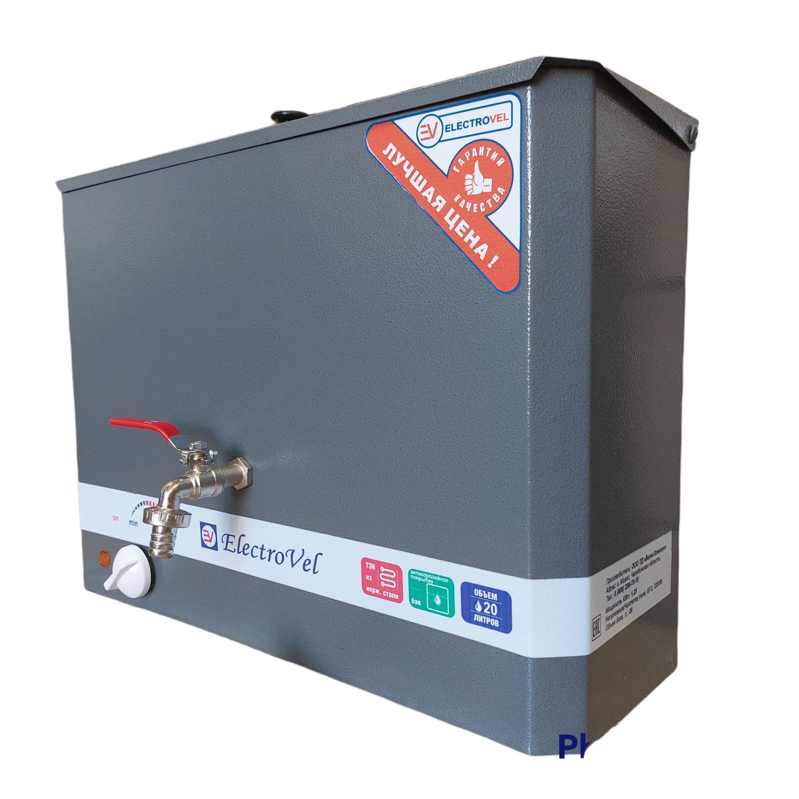 Бачок ELECTROVEL с водонагревателем 20 литров СЕРЕБРО
