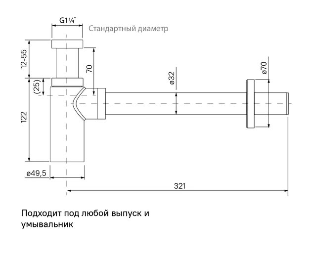 Бутылочный сифон для умывальника с гидрозатвором Iddis Optima Home OPTBL00i84