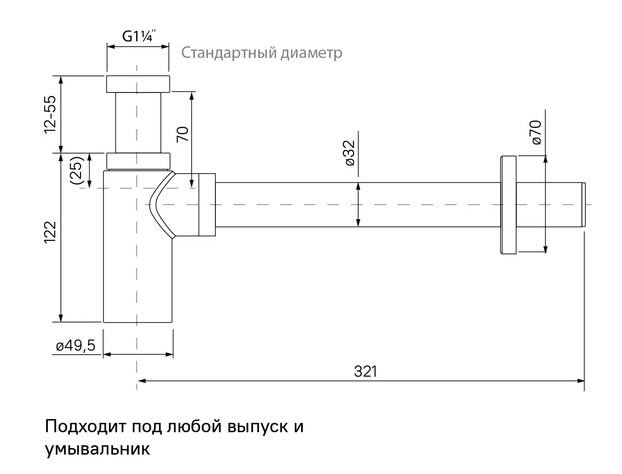 Бутылочный сифон для умывальника с гидрозатвором Iddis Optima Home OPTGM00i84