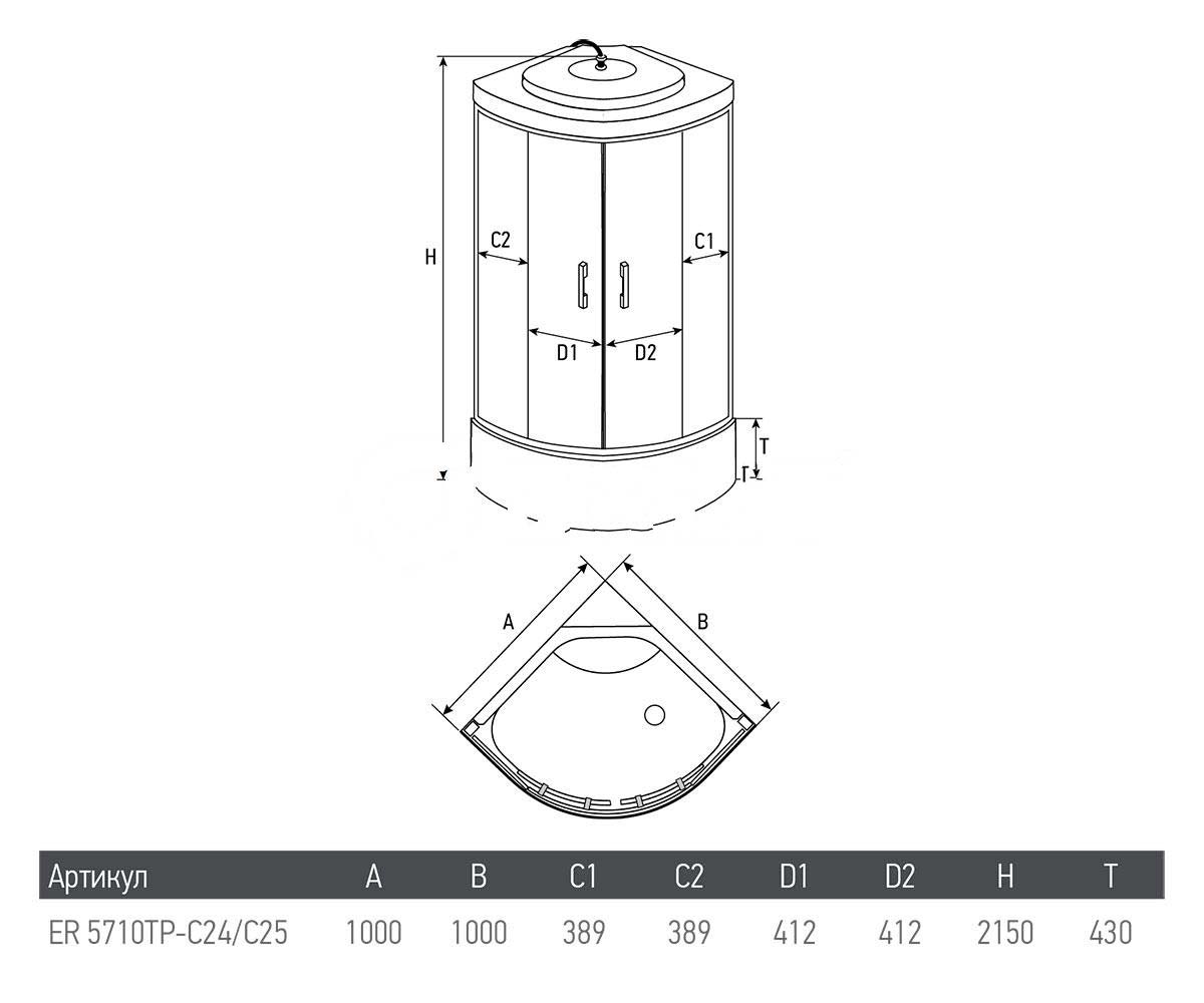 Душевая кабина ERLIT 100х100 ER5710TP-C24