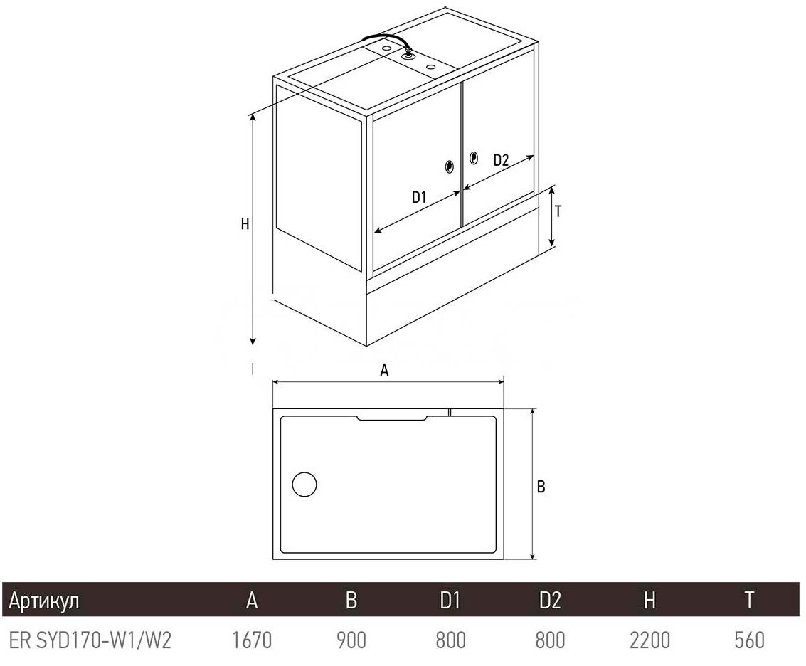 Душевой бокс ERLIT 167х90 ER SYD170W-1