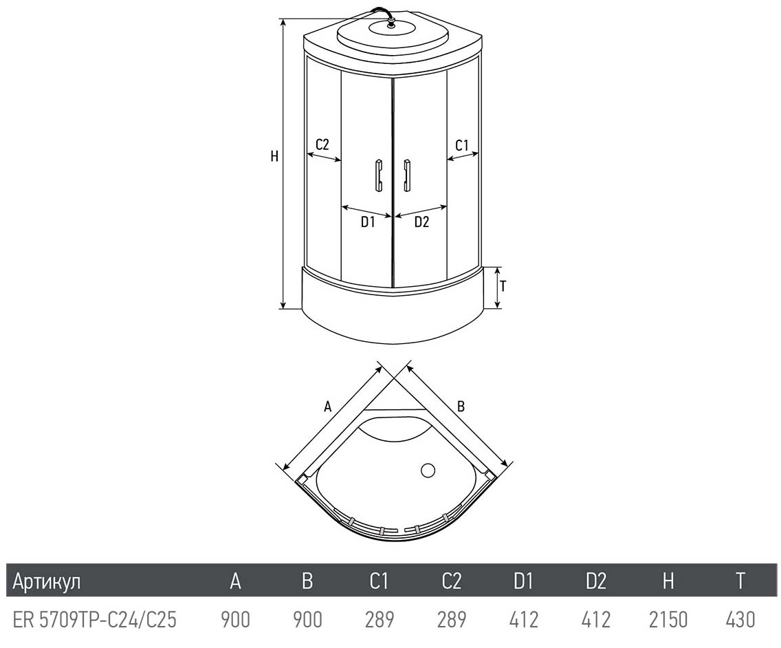 Душевая кабина ERLIT 90х90 ER5709TP-C24