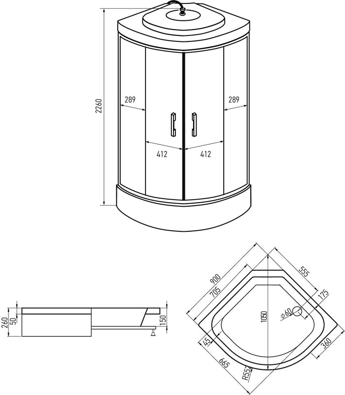 Душевая кабина ERLIT 90x90 ER350926-C3-RUS