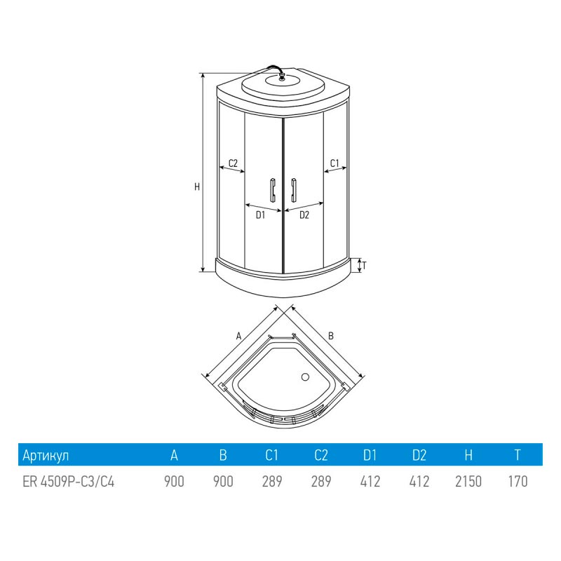 Душевая кабина ERLIT 90x90 ER4509P-C3-RUS