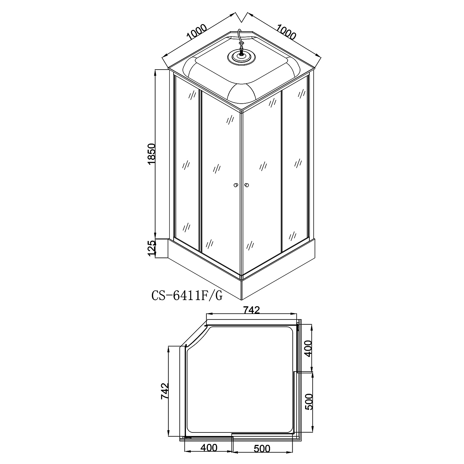 Душевая кабина Loranto 1000х1000х2150 белая, матовое стекло 4мм, поддон 13см, профиль сатин (CS-6411F, 100*100*215)