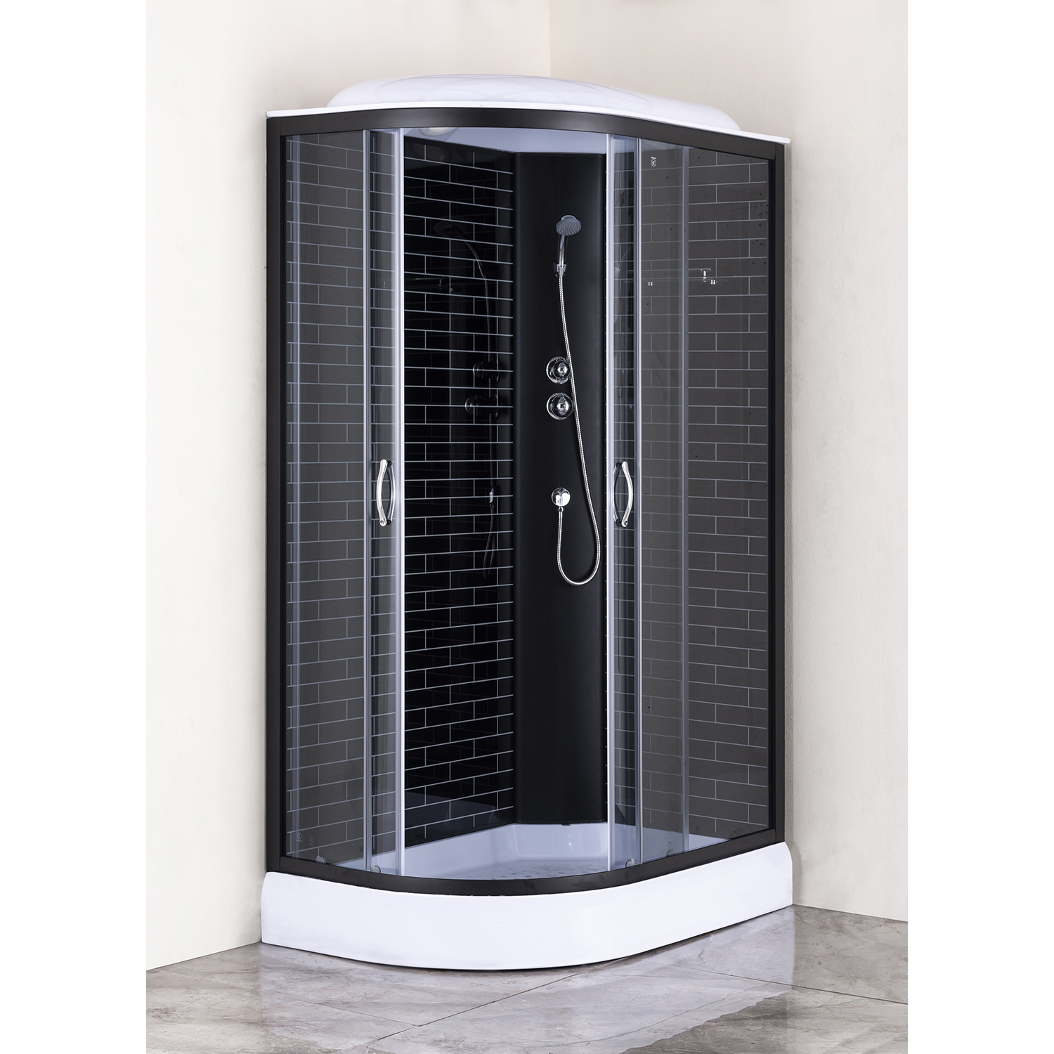 Душевая кабина Loranto 120х80х215 правосторонняя, поддон 13см, черный кирпичный узор, прозрачное стекло 4мм, профиль черный (CS6612013RGB120)
