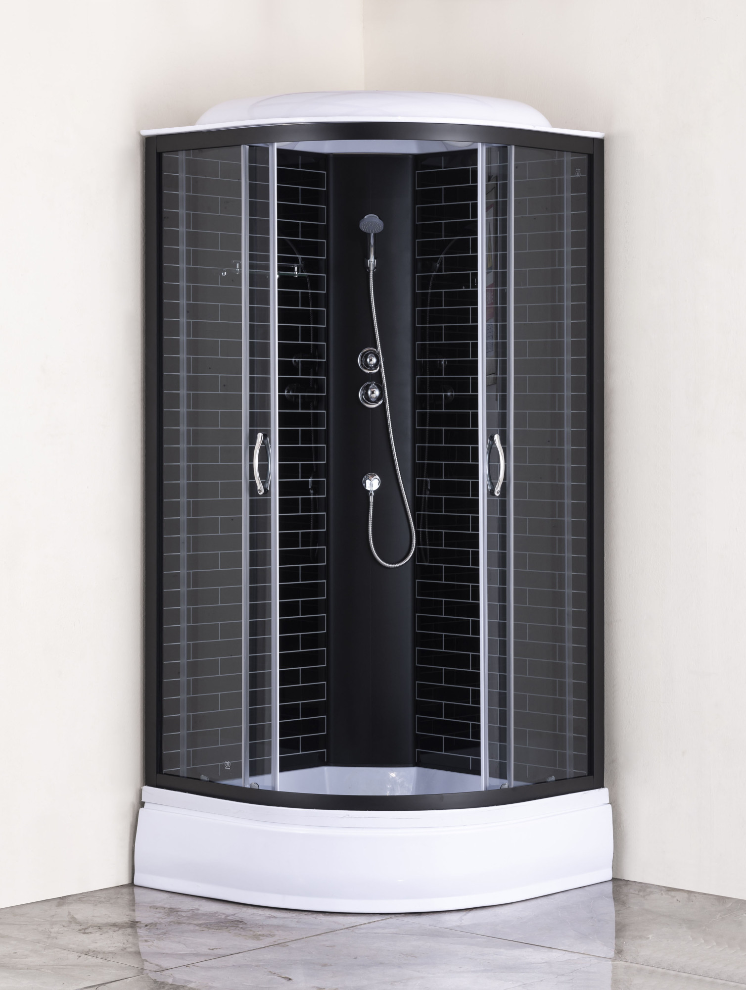 Душевая кабина Loranto 90х90х215 поддон 25 см, черный кирпичный узор, серое стекло 4мм, профиль черный (CS-6690-25GB 90)