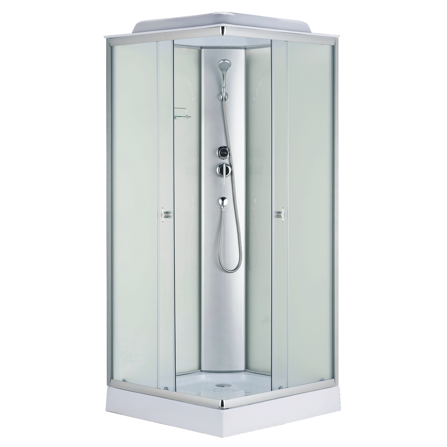 Душевая кабина Loranto 980х980х2150 белое заднее стекло, поддон 14 см, матовое стекло 4 мм, профиль хром матовый (CS-992EATM/W-100)