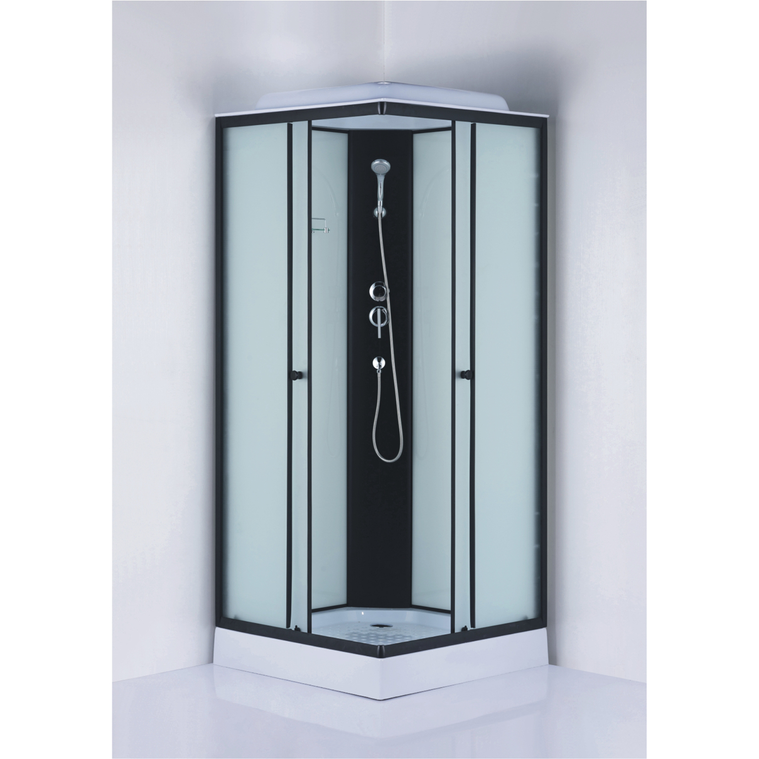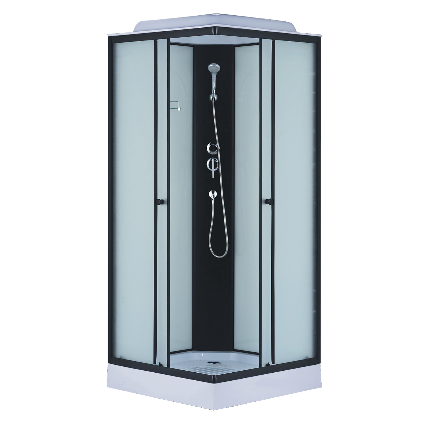 Душевая кабина Loranto 980х980х2150 белое заднее стекло, поддон 14 см, матовое стекло 4 мм, профиль черный (CS-992EBTM/W-100)