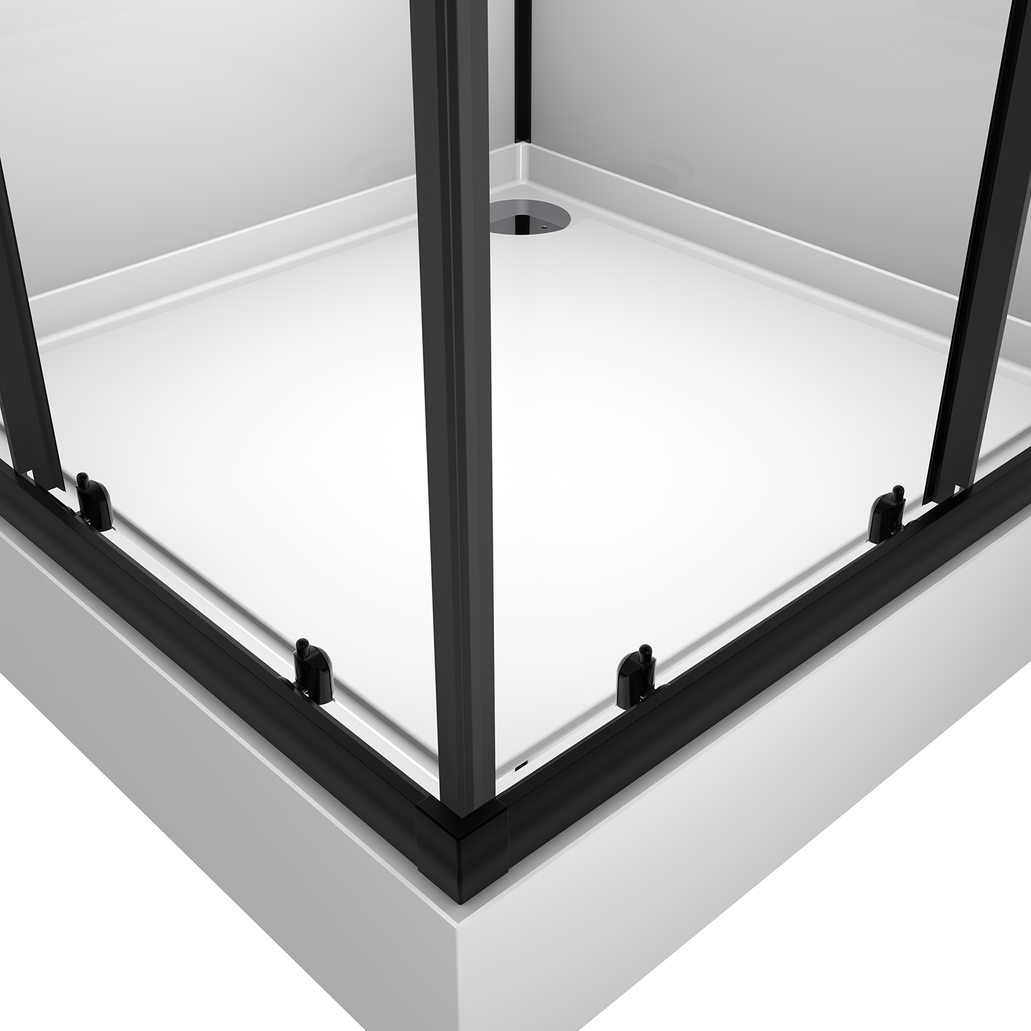 Душевая кабина Loranto NEO 90x90x(190+15) c низким поддоном 15см, прозрачное закаленное стекло 5 мм,задние стеклянные стенки белые, профиль черный-матовый (CS-21801)