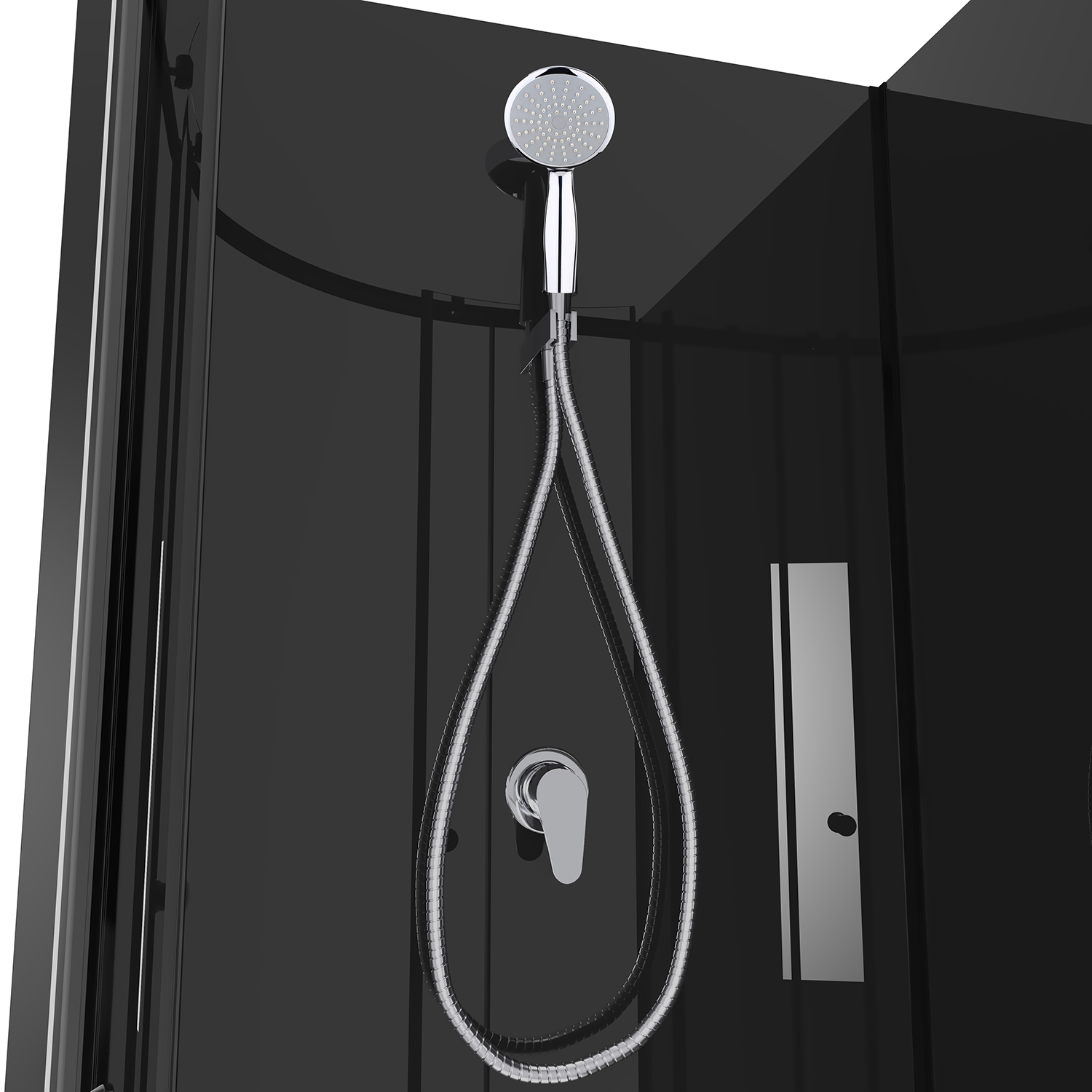 Душевая кабина Loranto NEO 90x90x(190+15) с низким поддоном 15см, прозрачное закаленное стекло 5 мм, задние стеклянные стенки черные, профиль черный-матовый (CS-21801BP)