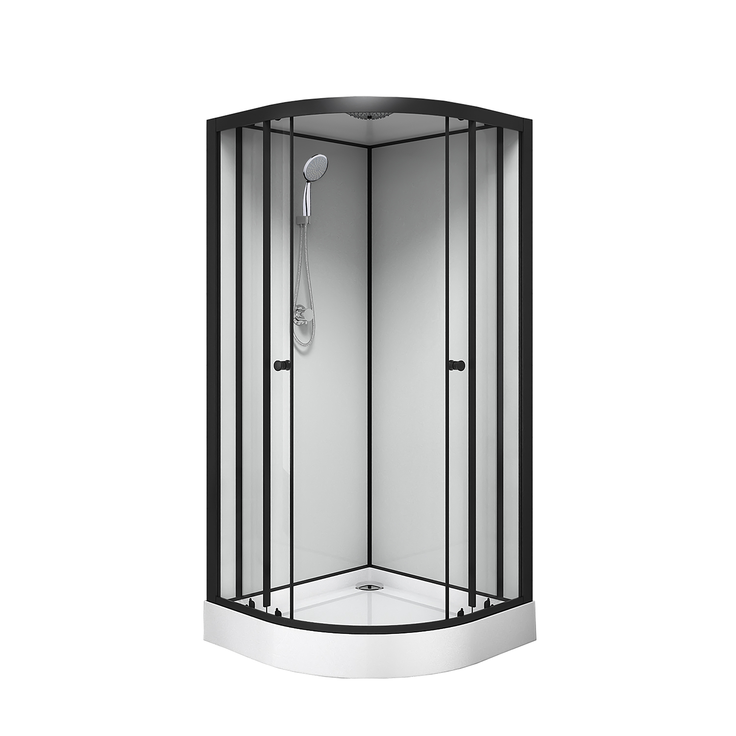Душевая кабина Loranto NEO 90x90x(190+15) с низким поддоном 15см, прозрачное закаленное стекло 5 мм, задние стеклянные стенки белые, профиль черный-матовый (CS-22109)