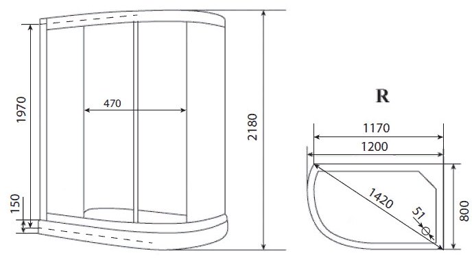 Душевая кабина TIMO ECO TE-0702P R 1200х800