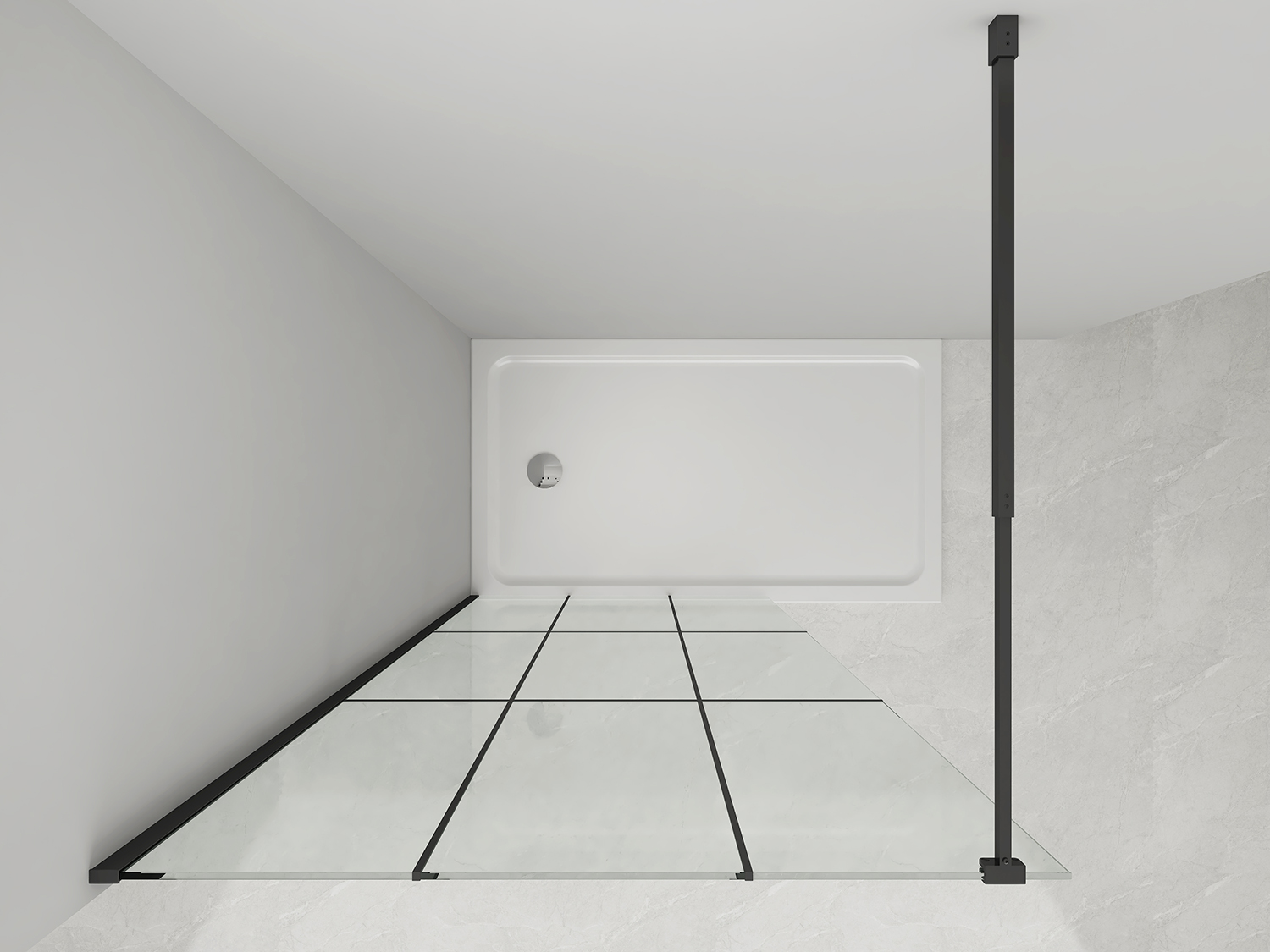 Душевая перегородка Loranto Walk-in 70x200 регулируемый кронштейн 70-100 мм, прозрачное стекло "Лофт клетка" 8 мм, профиль черный матовый (CS-W02B-70)