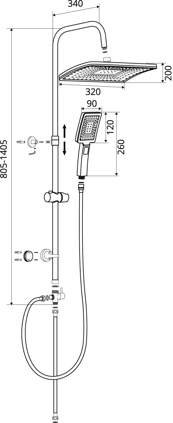 Душевая стойка с тропическим душем Osgard Grunan Nickel 10040