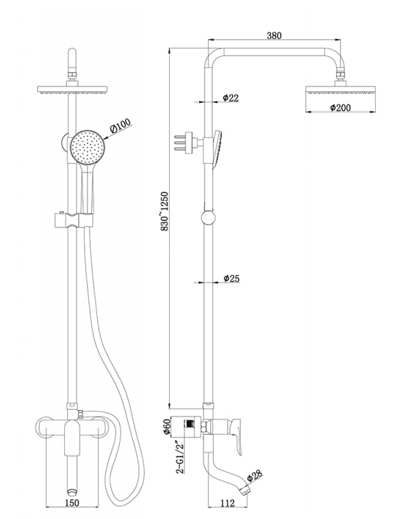 Душевая стойка со смесителем BRAVAT EMERALDA F6337371CP-A-RUS