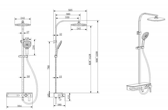Душевая стойка со смесителем BRAVAT Meissen F6277312CP-A-ENG