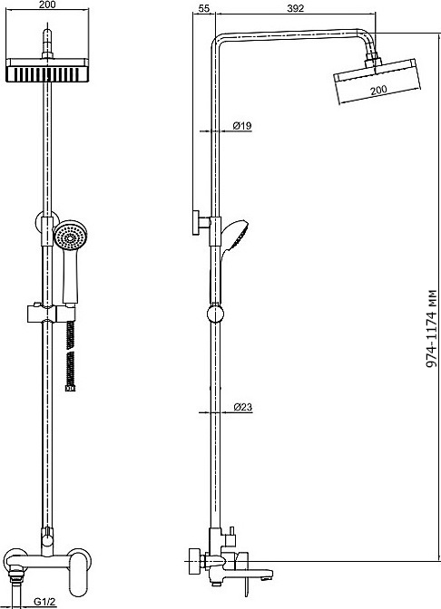 Душевая стойка со смесителем BRAVAT Opal F6125183CP-A4-RUS