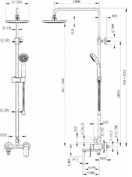 Душевая стойка со смесителем BRAVAT Opal С F6125183CP-A5-RUS