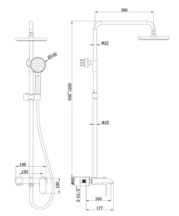Душевая стойка со смесителем BRAVAT PURE F6335369CP-A-RUS