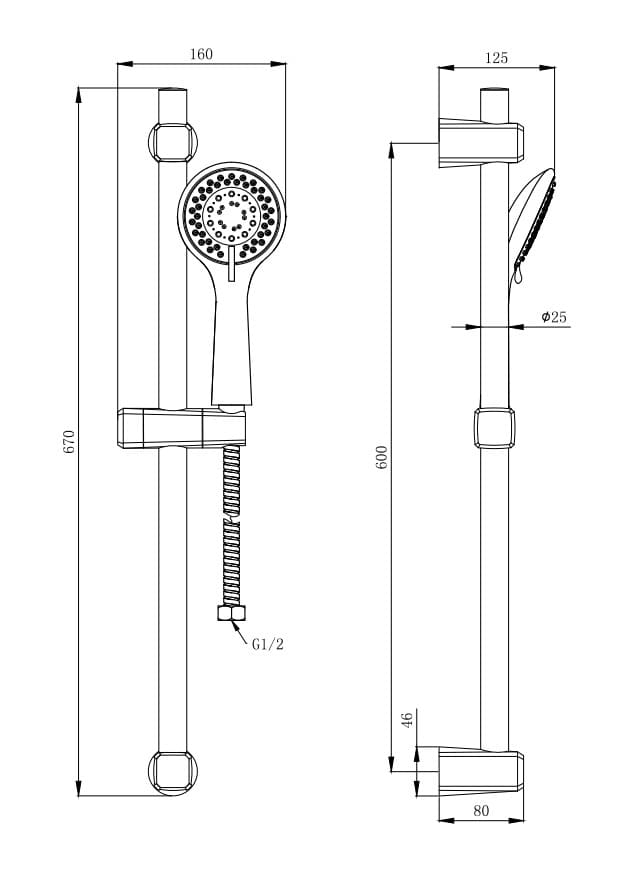 Душевой гарнитур Aquanika Basic AQB01CR 600 мм хром