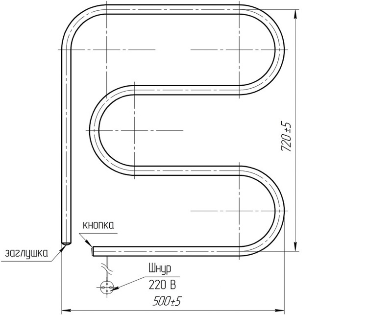 ЭЛЕКТРИЧЕСКИЙ ПОЛОТЕНЦЕСУШИТЕЛЬ "F-образный ", 500х720 ТЕРА ПСН-04-03