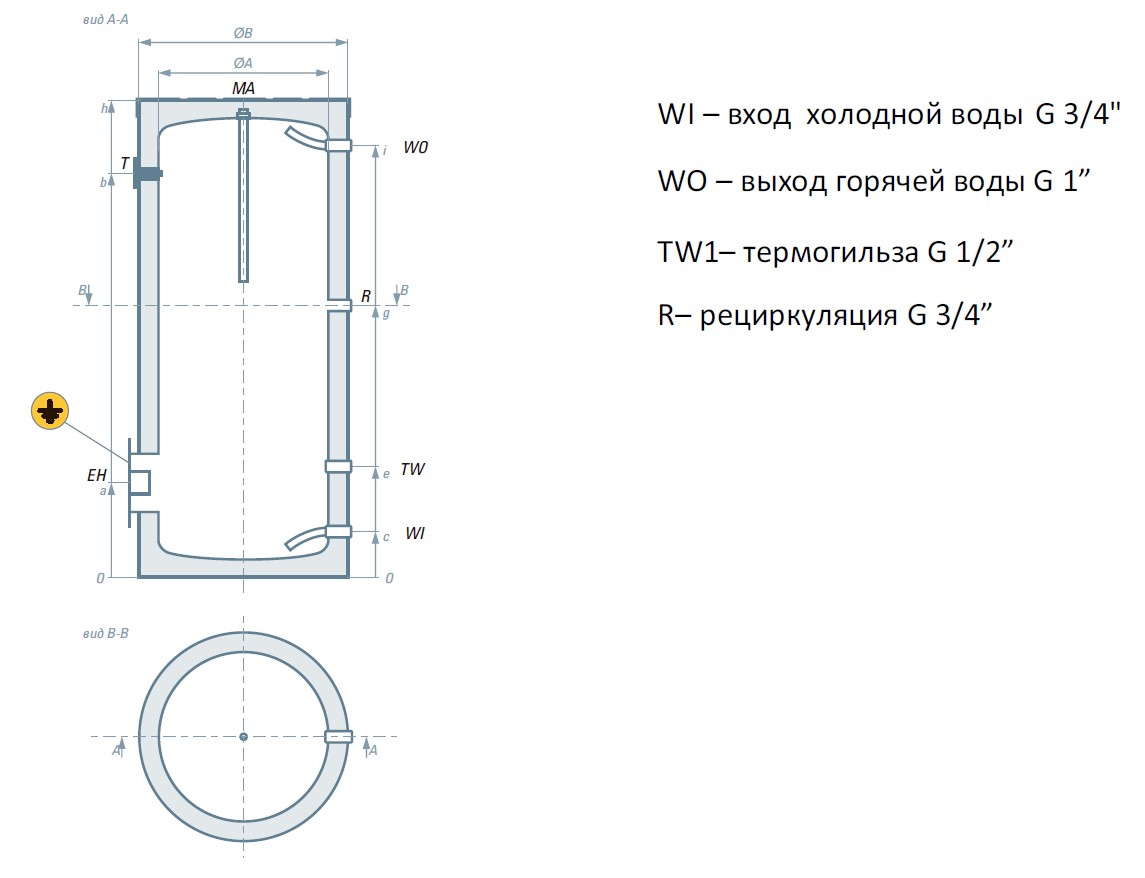 Емкость Gasline GL300 БТО INOX с возможностью подключения ТЭНа