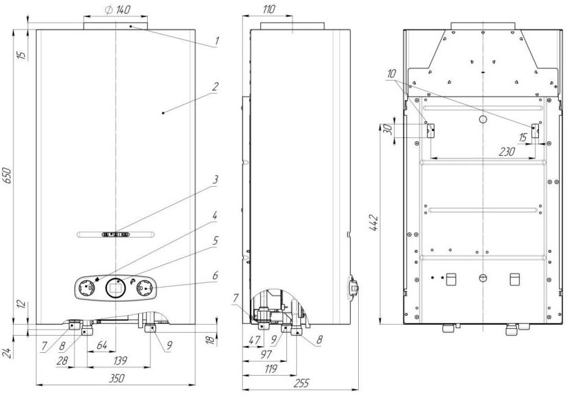 Газовая колонка Vilterm S13 26кВт серебро, природный газ