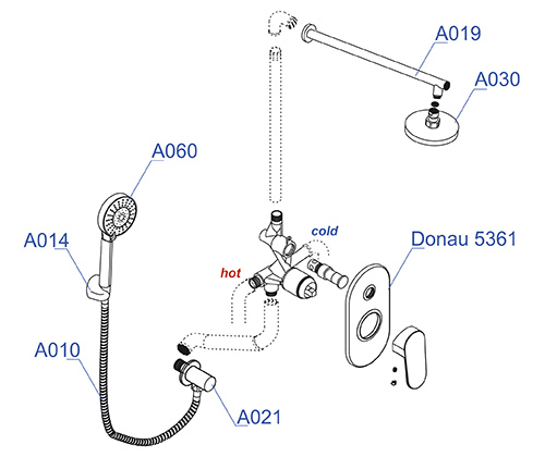 Комплект для душа с верхней душевой насадкой и лейкой WasserKraft A14030
