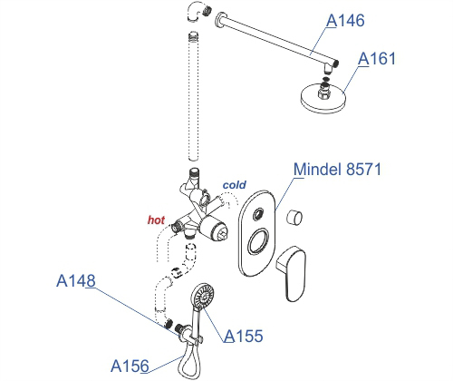 Комплект для душа с верхней душевой насадкой и лейкой WasserKraft A85155