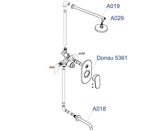 Комплект для ванны с изливом и верхней душевой насадкой WasserKraft A13029