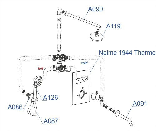 Комплект для ванны с верхней душевой насадкой, лейкой и изливом WasserKraft A171919