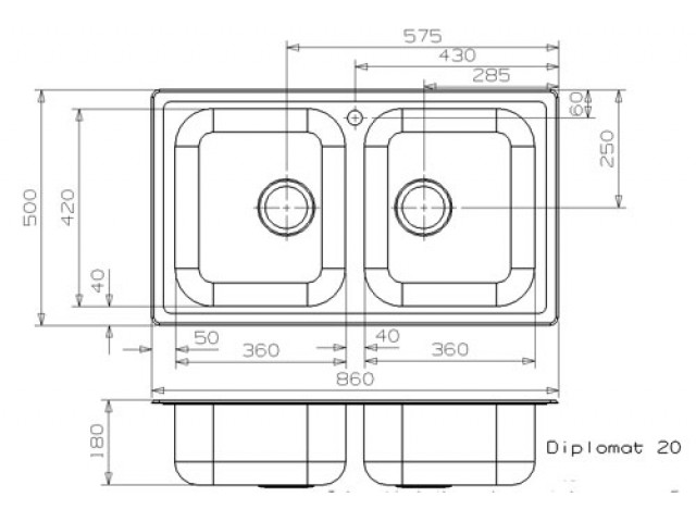 Кухонная мойка REGINOX Diplomat 20 LUX KGOKG, врезная