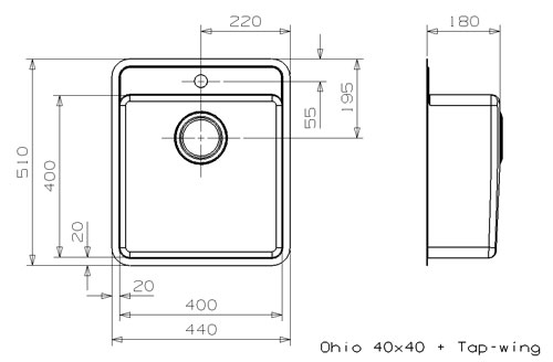 Кухонная мойка REGINOX Ohio 40x40 Tap-wing LUX 3,5