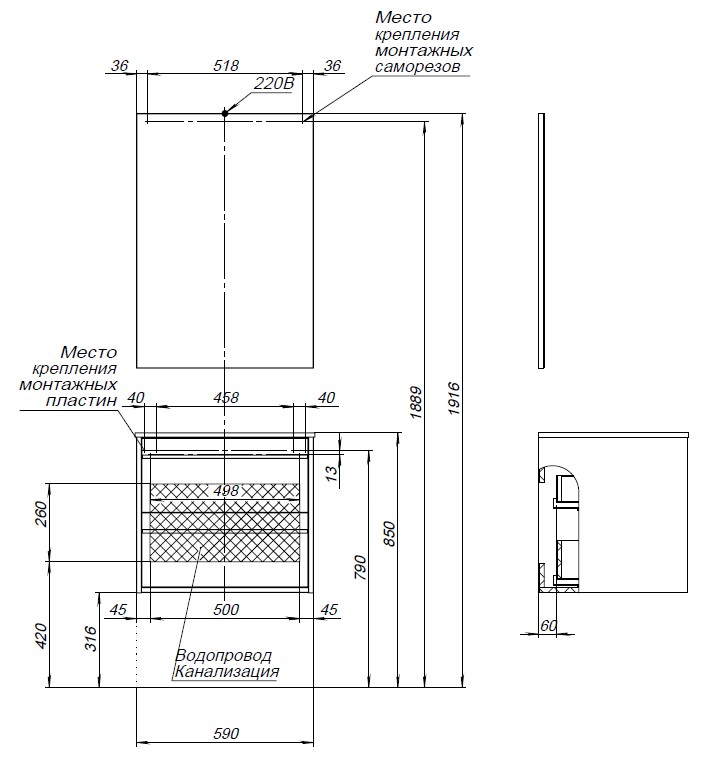 Мебель для ванной Aquanet Lino 60 белый матовый