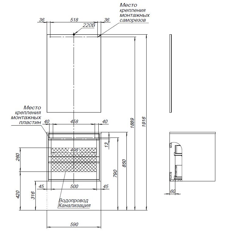 Мебель для ванной Aquanet Lino 60 дуб веллингтон