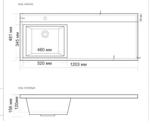 Мебельный умывальник Andrea 1200 из литьевого мрамора левосторонний
