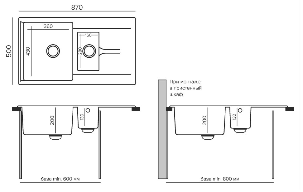 Мойка гранитная Tolero Brig 870 627383 черный
