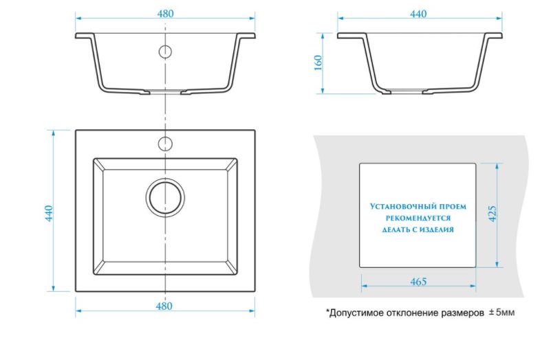 Мойка из искусственного камня GLANZ J35 светлый графит