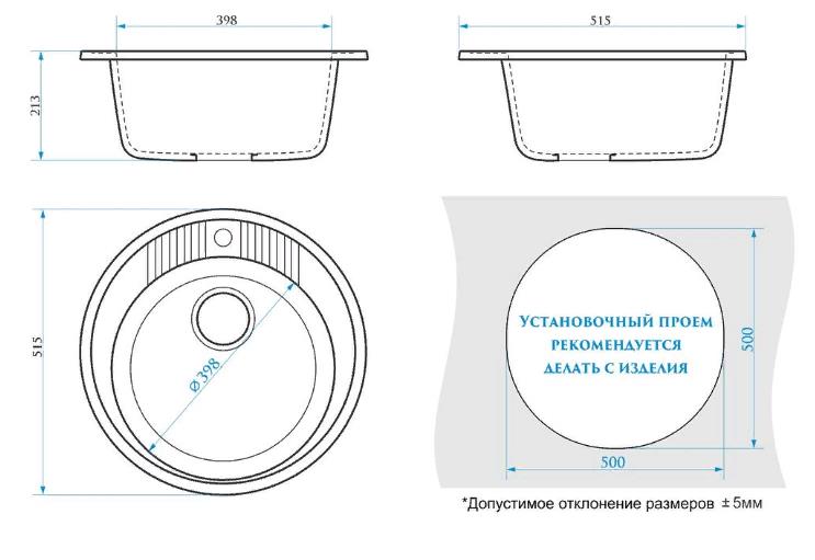 Мойка из искусственного камня GLANZ J6 темно-серый