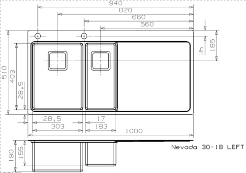 Мойка REGINOX Nevada L 30х18, left, левосторонняя