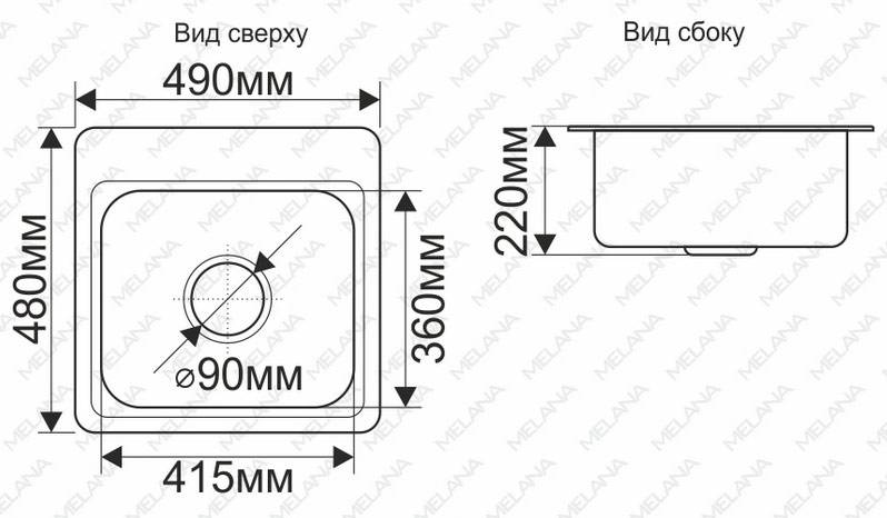 Мойка врезная Melana люкс 49*48 сатин 4948