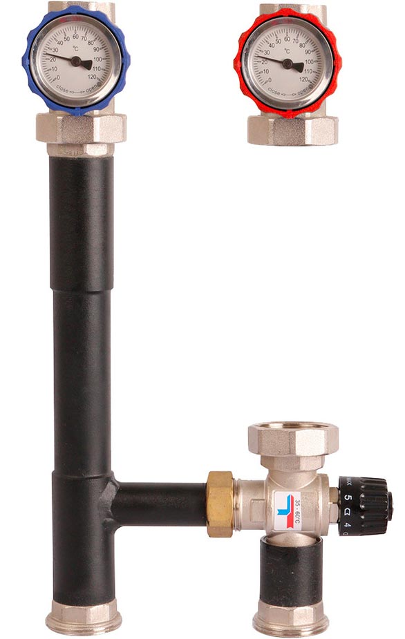 Насосная группа Rommer с термостатическим смесительным клапаном 35-60° 1" без насоса RDG-0002-002503