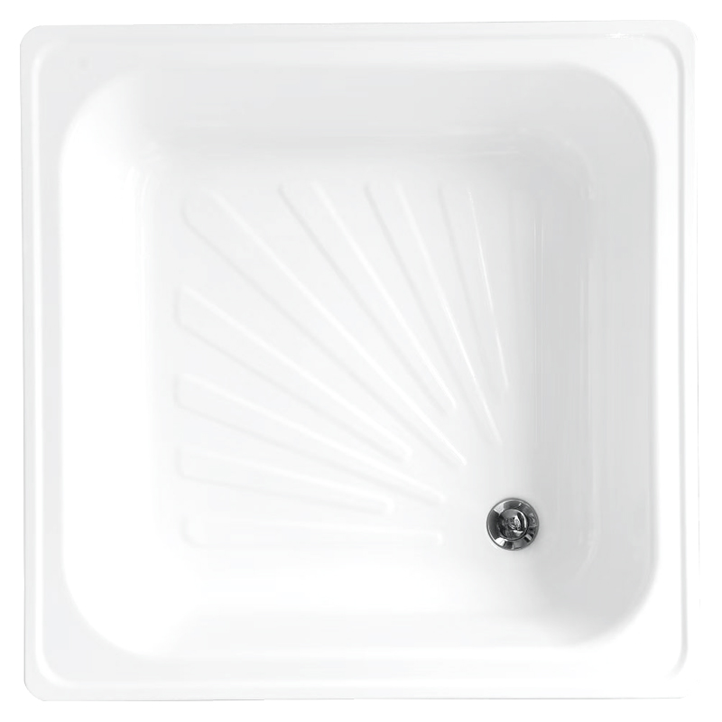 Поддон Loranto стальной, квадратный 70х70х15 толщина стали 0,9 мм, отверстие для слива 5 см, белый (LG700B)