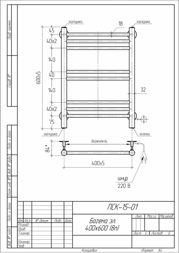 Полотенцесушитель электрический Тера 400x600 Богема ПСК-15-01