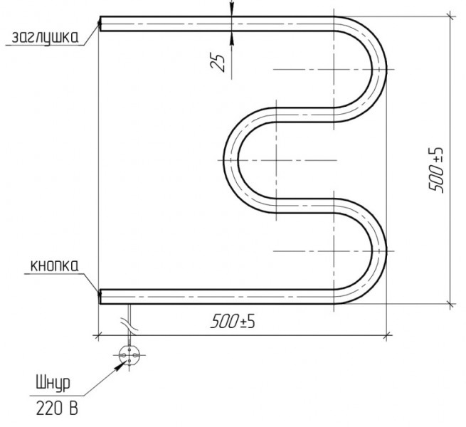 Полотенцесушитель электрический Тера 500x500 М-образный без упаковки ПСН-05-02