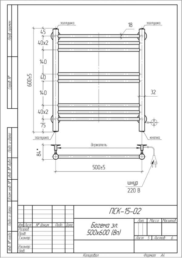 Полотенцесушитель электрический Тера 500x600 Богема ПСК-15-02