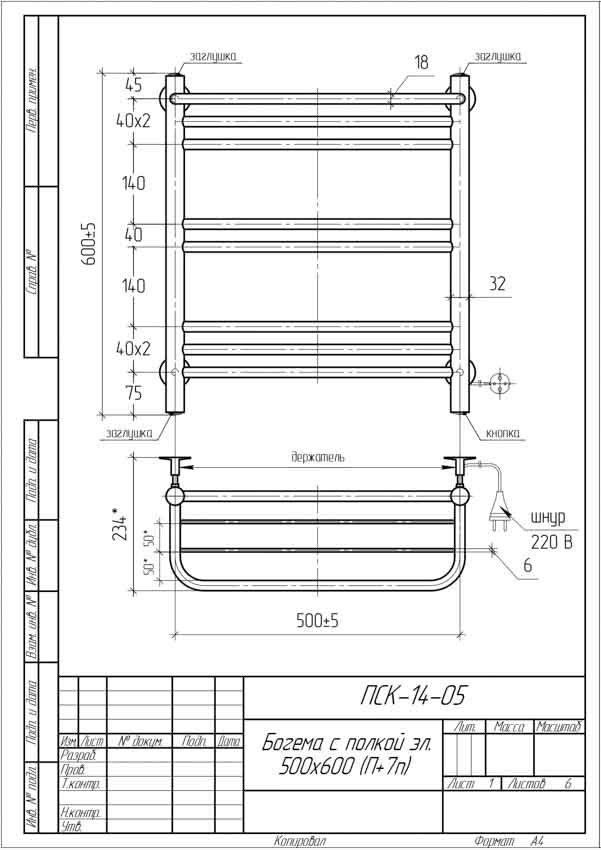 Полотенцесушитель электрический Тера 500x600 Богема с полкой ПСК-14-05
