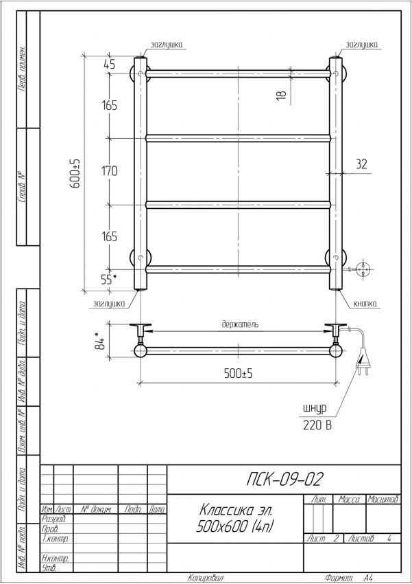 Полотенцесушитель электрический Тера 500x600 Классика ПСК-09-02